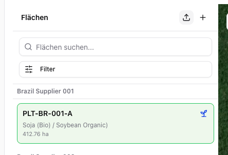 Geodaten (Produktionsstandorte) sind ein zentraler Bestandteil der EUDR-Compliance. Sie können Geodaten auf mehreren Wegen bereitstellen:Geodaten auf der Karte zeichnen