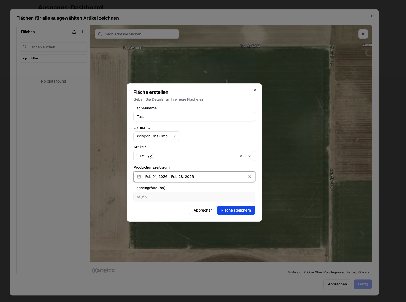 Zeichnen Sie die Produktionsfläche auf der Karte ein oder laden Sie eine GeoJSON-Datei hoch.